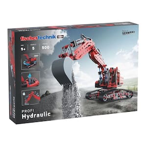 Kit de construção de modelos hidráulicos Fischertechnik Profi com 500 peças e 5 opções de modelo para uma experiência realista de aprendizado hidráulico