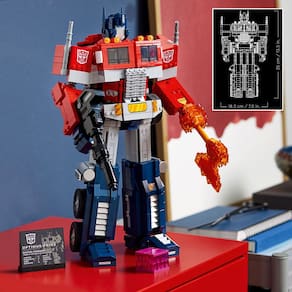 LEGO Icons Optimus Prime 10302 Conjunto de bonecos Transformers 2 em 1, kit de montagem de robô e caminhão para adultos, perfeito para exibição ou brincadeiras - Com este conjunto, baseado no lendário Autobot Transformers, os adultos constroem um boneco Optimus Prime que se converte de robô LEGO caminhão e vice-versa - Reviva a saga Transformers com acessórios, incluindo o lançador de íons, Autobot Matrix of Leadership, um machado Energon, cubo Energon e jetpack - Este modelo de robô colecionável exclusivo é uma ótima peça de decoração de casa - complete a construção com uma placa de exibição exclusiva com fatos Optimus Prime - Este boneco LEGO Optimus Prime faz parte de uma variedade de conjuntos LEGO projetados para construtores adultos que procuram seu próximo projeto imersivo - Abra a câmara peitoral do modelo do robô para armazenar a Matriz de Liderança Autobot e admirar os 19 pontos de articulação no modo robô - Prenda o jetpack no modo robô e coloque o lançador de íons e o machado Energon nas mãos do lendário líder Autobot - Presenteie-se ou dê este kit de construção de modelo como um aniversário para um fã do Optimus Prime e do universo Transformers ou um presente de Natal criativo para homens, mulheres, mães, pais, marido ou esposa