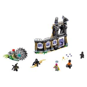 LEGO Marvel Super Heroes Vingadores: Infinity War Corvus Glaive Thresher Attack 76103 Kit de montagem (416 peças) - Construa a parede Wakandan, com um portão de abertura, torre com 2 torres rotativas, duas torres de tiro de pino, atirador de disco oculto, laboratório, função flip e o elemento Infinity Stone, além de um lançador Thresher - Este brinquedo de super-herói inclui 5 bonecos da Guerra Infinita: figura de visão, figura Shuri, figura do Pantera Negra, figura Corvus Glaive e um boneco Outrider com 6 braços - A parede Wakandan mede mais de 20 cm de altura, 25 cm de largura e 9 cm de profundidade. O lançador de debulhador mede mais de 5 cm de altura, 8 cm de largura e 12 cm de profundidade mede mais de 7 cm de altura, 7 cm de comprimento e 4 cm de largura - 416 peças – Os brinquedos do filme Vingadores: Guerra Infinita para meninos e meninas entre 7 e 14 anos de idade. Os conjuntos de brinquedos de super-heróis da Marvel da LEGO são compatíveis com todos os conjuntos de construção LEGO para construção criativa