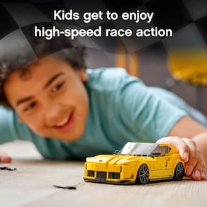 minifigura do motorista tem um traje de corrida Toyota, capacete de segurança e chave inglesa, oferecendo muitas inspiração para brincadeiras criativas e em alta velocidade - Crianças e entusiastas de carros podem explorar a composição do Toyota GR da vida real Supra enquanto constroem, antes de expor sua criação