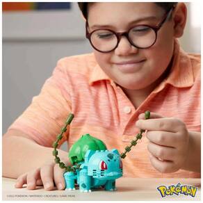 O kit MEGA Pokémon Build & Show Bulbasaur é um conjunto de montagem com blocos de construção que permite montar uma figura articulada do personagem Bulbasaur em formato de exibição. O modelo final atinge cerca de 10 cm de altura, com estrutura tridimensional que reproduz corpo, cabeça e bulbo com detalhes característicos da franquia Pokémon.