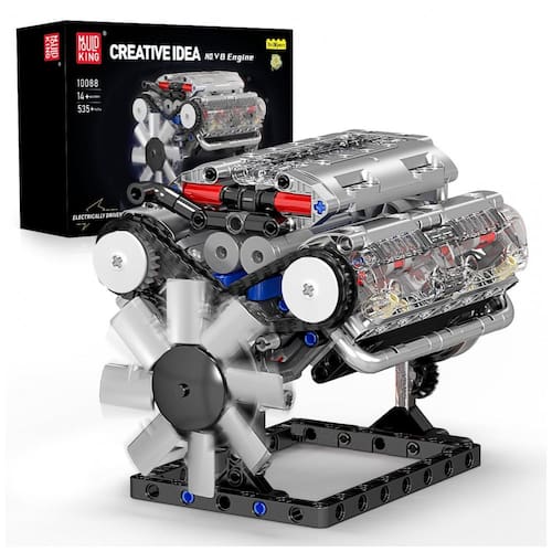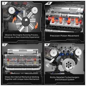 Este é um motor de cilindro V8, que possui oito cilindros dispostos em forma de V. Dois conjuntos de quatro cilindros são dispostos no mesmo virabrequim, com um ângulo normalmente de 90 graus. Este motor é amplamente utilizado em modelos de alto desempenho e luxo devido ao seu alto desempenho e operação suave. Equipado com um motor em forma de L e uma caixa de bateria de 9V, este motor possui um design compacto que pode atingir alta potência dentro de um compartimento limitado do motor. Os motores V8 modernos alcançam maior eficiência de combustível e menores emissões através de turboalimentação, distribuição variável de válvulas e outras tecnologias. Este conjunto de brinquedos é compatível com a maioria dos blocos de construção semelhantes no mercado, com forte escalabilidade. As instruções de instalação estão incluídas para que você possa começar cada etapa. Este é um excelente jogo de aprendizagem em casa para todos e será um ótimo momento para os pais brincarem com as crianças.
