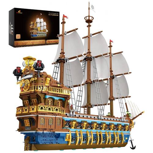Navio de LuxoO conjunto contém 3.162 peças que podem ser montadas para criar um lindo navio de exibição do Navio de Guerra Real. Reprodução realista do protótipo e criação prática de vários formatos requintados de navios, permitindo reviver os clássicos. Este navio dourado do sol real irá levá lo em uma maravilhosa viagem de barco. Ao construir este navio de brinquedo, você não só poderá experimentar a alegria da criação, mas também sentir o encanto do mundo marinho. Design realistaHá decorações ricas no navio, e cada decoração reflete a atmosfera rica e nobre deste navio da frota real. Há muitas surpresas esperando por você para explorar. Os detalhes do casco estão no lugar e um grande número de peças banhadas a ouro de alta qualidade fazem com que este navio pareça mais nobre e real. O navio de guerra está equipado com canhões e os barris estão dispostos uniformemente na lateral do navio. Quando o inimigo se aproxima, eles podem atacar. Estrutura hierárquicaEste brinquedo de navio adota um design de estrutura em camadas, e a cabine, o convés, etc. podem ser rapidamente desmontados e separados, tornando este edifício estrutural mais jogável. O design simulado em forma de vela quadrada de três mastros é combinado com velas premium, e a impressão requintada na bandeira também é muito única. A estrutura do casco é estável e, quando o vento sopra, as velas balançam com o vento, restaurando o cenário do navio à vela. Este lindo conjunto de navio é definitivamente uma ótima ideia de presente. Ao mesmo tempo significativo e elegante, nosso conjunto de navio real será um presente de aniversário ou de Natal exclusivo, e quem receber esta surpresa criativa vai adorar. Além disso, este navio também é uma obra de arte para exibir, você pode colocá lo em sua casa ou escritório, e será uma decoração deslumbrante. O veleiro acabado mede aproximadamente 80 L x 20 L x 70 centímetros A Marca: Não Informado