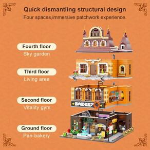 Entre em um mundo de elegância europeia com este conjunto de construção de 2663 peças. Da charmosa padaria à academia dinâmica e aos aposentos aconchegantes, cada nível oferece uma experiência distinta e imersiva. O jardim na cobertura oferece uma fuga tranquila, perfeita para os moradores desfrutarem. Este kit estimula a criatividade e oferece infinitas possibilidades de construção para crianças a partir de 6 anos. - ?Design europeu requintado?Mergulhe no charme de uma padaria de estilo europeu, meticulosamente trabalhada com tons marrons ricos, reminiscentes de uma esquina movimentada. Aproveite o pão de azeite de oliva exclusivo enquanto explora uma academia 24 horas, um espaço chique e um jardim sereno na cobertura. - ?Quatro níveis distintos?Com um design inovador de desmontagem rápida, este conjunto apresenta quatro níveis exclusivos: padaria, academia, área de estar residencial e um jardim na cobertura. Cada piso oferece uma experiência única, oferecendo possibilidades criativas ilimitadas. - ?Delícia da padaria?Aprecie os detalhes de uma padaria de pão orgânico com baixo teor de óleo e baixo teor de sal, completa com uma fonte central, um armário de doces e uma cozinha totalmente equipada — lindamente recriada com blocos de construção. - ?Fitness e espaço de vida refinados?A academia inclui uma área aeróbica, zona de levantamento de peso, bicicletas giratórias e muito mais. Os aposentos apresentam quartos aconchegantes, banheiros privativos e terraços iluminados pelo sol, oferecendo um equilíbrio de conforto e luxo. - ?Serene Sky Garden?O santuário na cobertura, feito com tijolos de construção requintados, apresenta música ambiente e vegetação exuberante, ideal para relaxar ou hospedar reuniões de verão.