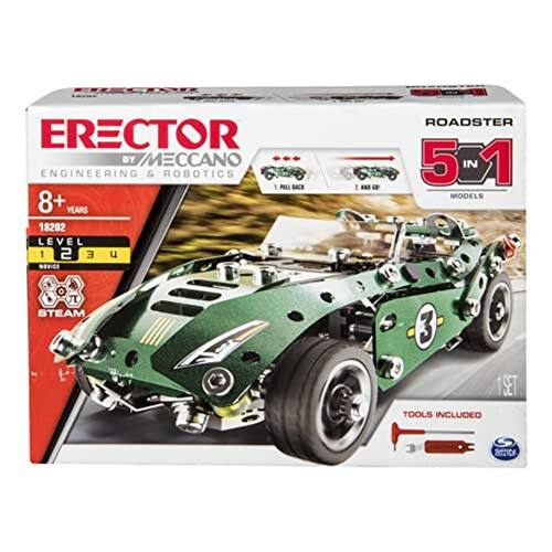 Construa um modelo de carro ultrarrápido e ultraelegante enquanto aprende as aplicações práticas da ciência e da engenharia com o Kit de Construção 5 em 1 Erector by Meccano Roadster. Uma escolha ideal para construtores de primeira viagem, este kit de construção de carros modelo apresenta um nível de dificuldade para iniciantes e leva aproximadamente uma a três horas para ser concluído. Ele vem com peças de metal e ferramentas autênticas, ajudando os jovens inventores a cultivar habilidades reais de engenharia à medida que constr. Uma vez montado, o mecanismo de recuo do roadster permite que as crianças o enviem com zoom em quase qualquer superfície plana. Além de construir o roadster, as crianças podem usar as 174 peças incluídas para construir quatro outras variações de veículos elegantes - dando a este conjunto um apelo sério e duradouro. Criado pelos renomados fabricantes de Erector e conjuntos de construção de robôs, este kit de construção pode ajudar a despertar um interesse ao longo da vida em ciência, tecnologia, engenharia, artes e matemática (STEAM). É recomendado para crianças com 8 anos ou mais e é uma ótima atividade para crianças e pais enfrentarem juntos.
