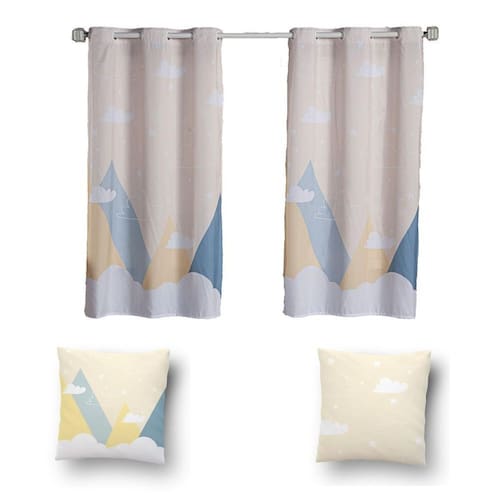 Kit De Cortina De 2 Metros + 2 Almofadas Infantis Kids