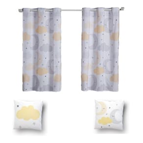 Kit De Cortina De 2 Metros + 2 Almofadas Infantis Kids