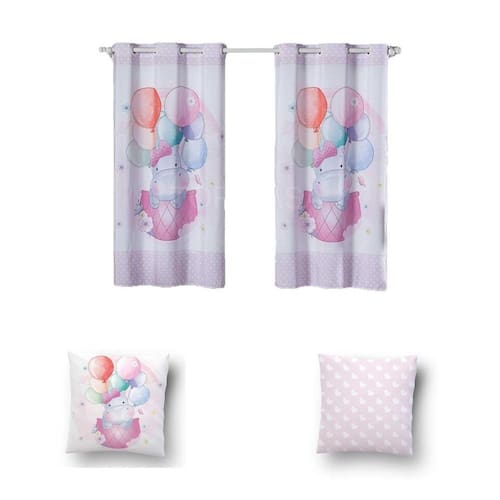 Kit De Cortina De 2 Metros + 2 Almofadas Infantis Kids