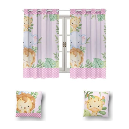 Kit De Cortina De 2 Metros + 2 Almofadas Infantis Kids