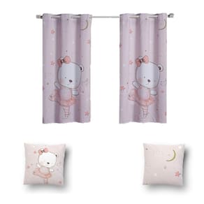 Kit De Cortina De 2 Metros + 2 Almofadas Infantis Kids