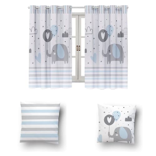 CONTEM: 01 - Cortina 2 metros Estampada Infantil 2,00 Largura x 1,50 Altura 02 - Capa de Almofada Estampada Infantil 45 X 45