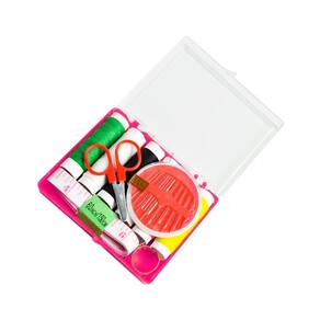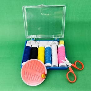 Contém: - 10 agulhas - 1 tesoura - 6 carretéis de linha - 1 fita métrica - 1 estojo específico para guardar as agulhas - 1 dedal - medidas aproximadas: 8cm de altura x 2cm de largura x 10,5cm de comprimento.