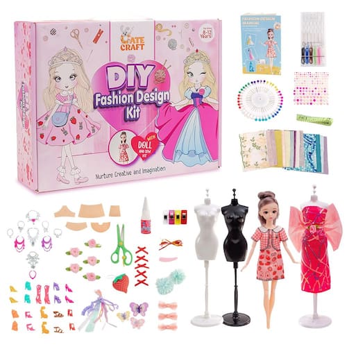 Entre em um mundo onde a imaginação dos seus pequenos voa! O kit de costura de design de moda para crianças da Cate Craft é um tesouro encantador de criatividade. Tudo o que seus pequenos designers precisam é embalado em 1 caixa. Deixe a diversão criativa começar!