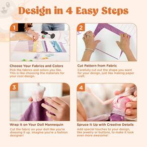 Nosso kit de design de moda para meninas de 6 a 12 anos vem com agulhas de cabeça grandes, manequins exclusivos com ranhuras nas costas, cola de tecido, modelos de design e muito mais. Deixe jovens designers explorarem o design de moda para crianças com facilidade!