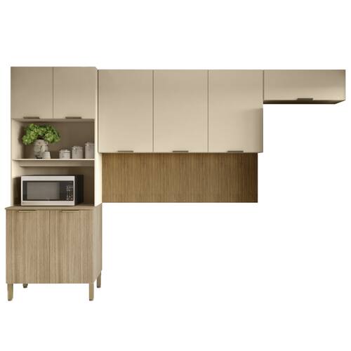 Transforme sua cozinha em um espaço glamoroso e cheio de estilo com a Cozinha. Com diferenciais exclusivos, essa cozinha vai encantar tanto os lojistas quanto os consumidores que buscam um ambiente charmoso e personalizado. O destaque principal da Cozinha é o painel central decorativo com textura Ripado Freijó, um elemento que está conquistando a todos. Esse painel exclusivo confere um toque moderno e sofisticado à cozinha, tornando-a única em sua categoria de cozinhas compactas. Além do design marcante, a funcionalidade também foi cuidadosamente pensada.