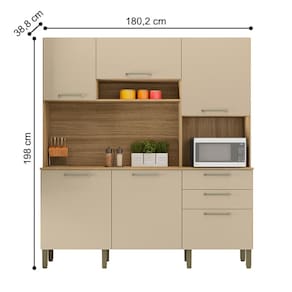 A Cozinha traz a tona todo o conceito de amplitude e organização para o ambiente, amplas repartições e nichos compõem a peça para melhor dispor de objetos e afins. Contém também espaço para forno ou micro, trazendo a praticidade de ter tudo em um só produto. Além de respeitar o meio ambiente a cozinha Ferrara vem com o acabamento com pintura fosca e textura sensível ao toque.