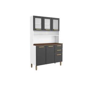 Kit de Cozinha Compacta Bella c/ 6 Portas (3 c/ Vidro) e 2 Gavetas 120cm Grafite - Bertolini