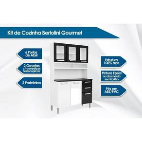 Kit de Cozinha Compacta Gourmet c/ 6 Portas (3 c/ Vidro) e 2 Gavetas 120cm Branco - Bertolini Marca: Bertolini