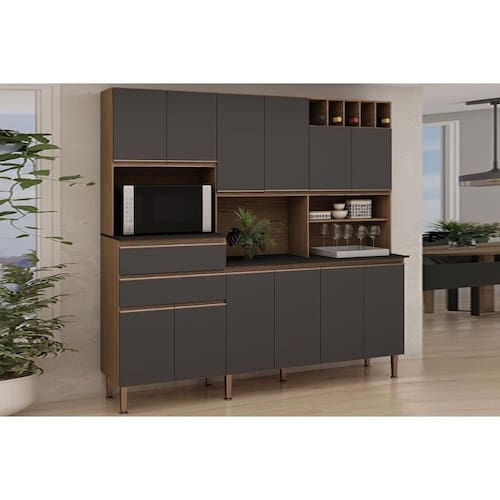 KIT DE COZINHA COMPACTA MALBEC PRIME C/ 12 PORTAS E 2 GAVETAS 204CM EBANO/GRAFITE - GENIALFLEX Marca: Genialflex