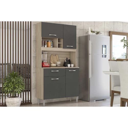 Kit de Cozinha Compacta Malta 4 Portas e 1 Gaveta 91cm Avena/Grafito - Demóbile Marca: Demóbile