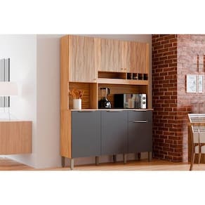 Tipo de Dobradiças - Dobradiças Metálicas Tipo de puxador - ABS/PVC Quantidade de Portas - 6 Portas de Abrir Tipo de Gaveta - Gaveta Externa Quantidade de Gavetas - 1 Tipo de Corrediça - Telescópicas Material das Prateleiras - Prateleiras em MDF Quantidade de Prateleiras - 3 Prateleiras Quantidade de nichos - 7 nichos Diferenciais dos Nichos - Nicho Garrafeiro - Nicho p/ Microondas - Nicho Decorativo Quantidade Porta-Garrafa - 1 Porta-Garrafa
