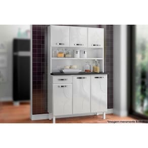 CARACTERÍSTICAS DE MÓVEIS Tipo de Estrutura do Móvel - 100% aço Tipo de Pintura - Eletrostática a Pó - Antiferruginosa Tipo de Acabamento da Pintura - Semi Brilho Características de móveis - Tampo em Fórmica de Mármore Preto Tipo de puxador - Polipropileno Quantidade de Prateleiras - 2 Prateleiras Quantidade de Gavetas - 1 Diferenciais da Gaveta - c/ Corrediças Metálicas Quantidade de Portas - 6 Portas de Abrir Suporte de Peso - 10 kg Garantia - 3 meses