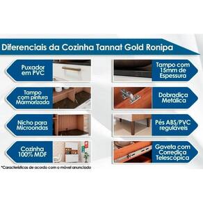 Kit de Cozinha Compacta Tannat Gold c/ 6 Portas e 1 Gaveta Castanho/Branco - Ronipa Marca: Ronipa
