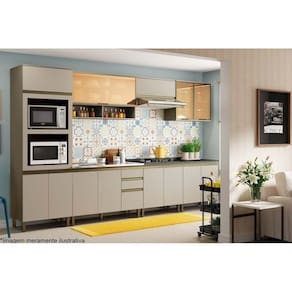 Cozinha Completa Connect 10 Peças (3 Armários + 3 Balcões + 1 Paneleiro + 3 Complementos) C10P01 Duna/Cristal - Henn