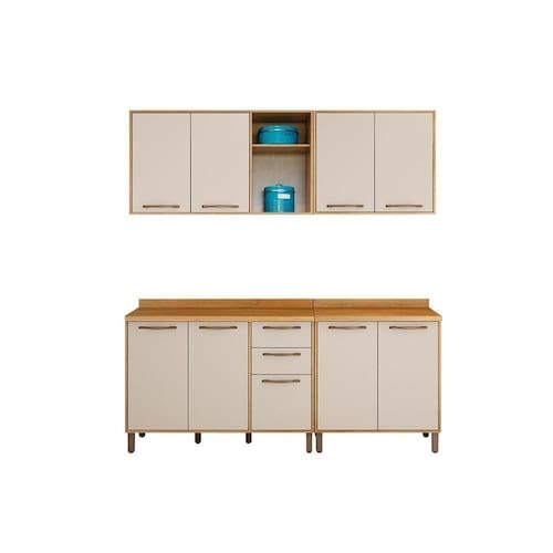 Kit De Cozinha Completa 4 Peças áustria (2 Armários + 2 Balcões) C4p143 Cinamomo/off White - Valdemóveis