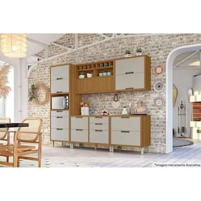 Kit De Cozinha Completa 5 Peças Completa Nesher Imperatriz (2 Balcões + 2 Aéreos+ Paneleiro) Freijo/off White - Nesher
