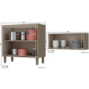 - Paneleiro de Cozinha Connect 2 Portas 35cm Duna/Cristal - Henn - 1 unidades