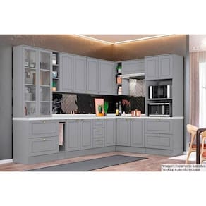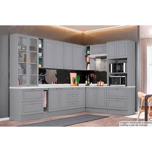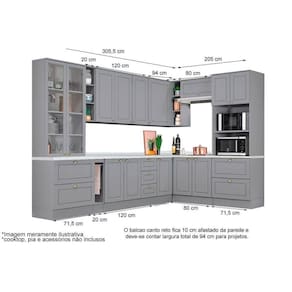 Cozinha Completa Americana 14 Peças (3 Armários + 4 Balcões + 1 Paneleiro + 6 Complementos) C14P02 Cinza - Henn Abaixo segue os produtos que compoem o KIT: