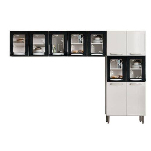 Cozinha Compacta Evidence 3 Peças (2 Armários + 1 Paneleiro) CPT62 Branco/Preto - Bertolini
