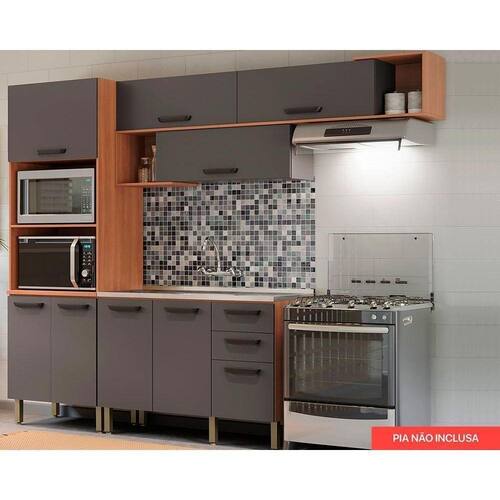 CARACTERÍSTICAS DE MÓVEIS Tipo de Estrutura do Móvel - MDP Tipo de Pintura - UV Características de móveis - Armário Aéreo - Gabinete p/ Pia - Paneleiro Duplo Tipo de puxador - ABS/PVC Quantidade de Gavetas - 3 Diferenciais da Gaveta - c/ Corrediças Telescópicas Quantidade de Portas - 7 Portas de Abrir Quantidade de nichos - 2 nichos Diferenciais dos Nichos - Nicho Decorativo Garantia - 3 meses