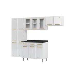 Cozinha Completa Diamante 4 Peças 3 Portas de Vidro (2 Armários + 1 Balcão + 1 Paneleiro) Branco - Telasul