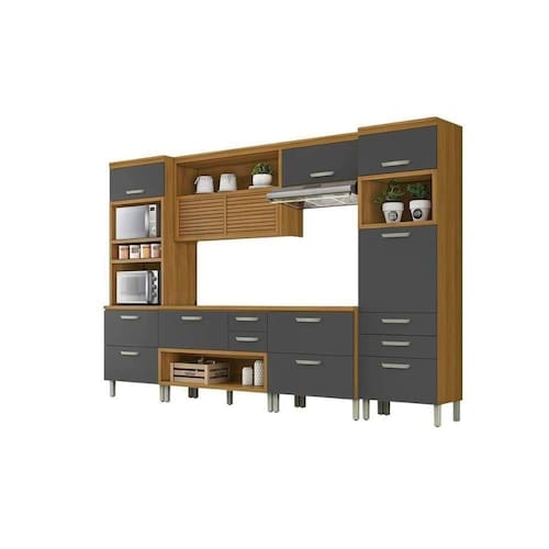Cozinha Completa Princesa 5 Peças (1 Armário + 2 Balcões + 2 Paneleiros) C5P22 Freijo/Grafite - Nesher