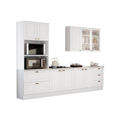 Cozinha Completa Americana 5 Peças (Torre Quente + 1 Aéreo + 2 Balcões + 1 Tampo p/ Cooktop) CZ267 Branco - Henn