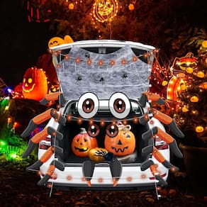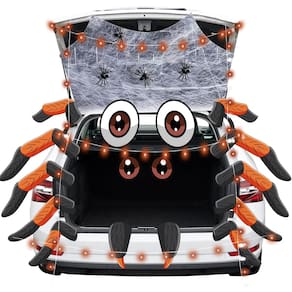 - Kit de decoração de carro Trunk or Treat: o pacote inclui 16 adesivos de aranha de Halloween, 1 teia de aranha, 2 luzes LED, 2 fita adesiva dupla face. Conjunto super fofo para decorações de halloween para criar uma atmosfera de festival divertida e assustadora.