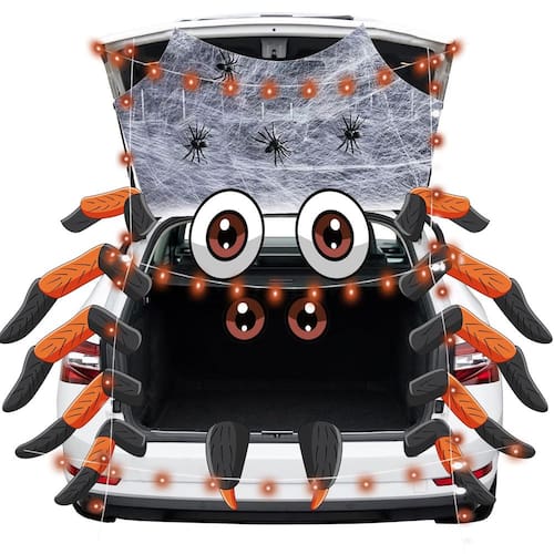 - Ampla aplicação: ótimo para decorações de porta-malas de Halloween, decore o porta-malas do seu carro, adequado para SUVs, sedans, etc. Você pode decorá-los no porta-malas da porta da garagem, na porta da frente da casa. Este kit de decoração de carro-aranha é adequado para decorações de halloween internas, decorações de halloween ao ar livre, decorações de festas de halloween, etc.