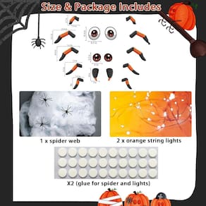 - Decorações de aranha de Halloween: os adesivos de aranha e as teias de aranha darão aos convidados uma sensação assustadora de estar no Halloween. Você pode colocá-lo ao redor dos olhos e pés da aranha. Brilhe na luz laranja à noite para alegrar o Halloween.
