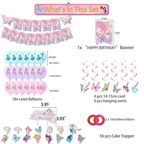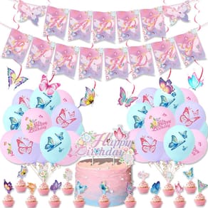 Design caprichoso de borboleta: este conjunto apresenta um tema colorido de borboleta com balões rosa pastel, roxo e azul, perfeito para criar uma atmosfera mágica e sonhadora em qualquer festa. Kit de festa completo: inclui um banner de “Feliz Aniversário”, 18 balões de látex (6 rosa, 6 azuis, 6 roxos), 16 coberturas de bolo e bandeiras de borboleta para decorar lindamente seu aniversário ou chá de bebê. Materiais de alta qualidade: feito de látex e cartolina duráveis, este kit garante balões e decorações duradouras que permanecem inflados durante todo o evento. Versátil para várias ocasiões: ideal para festas de aniversário, chás de bebê ou qualquer ocasião especial, este conjunto com tema de borboletas adiciona um toque encantador à sua celebração. Fácil de configurar: o kit foi projetado para facilitar a montagem, com todos os componentes prontos para uma experiência de decoração sem complicações. Basta inflar os balões e pendurar o banner para uma configuração rápida.