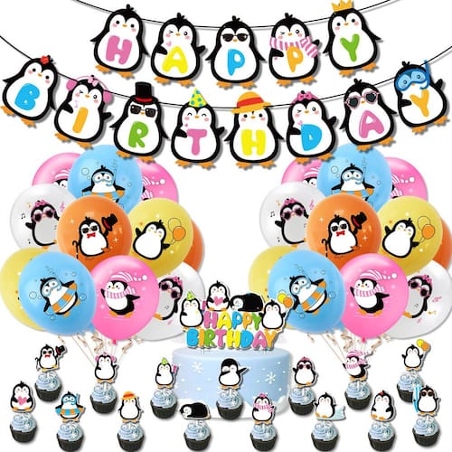 Adorável tema de pinguim: com desenhos divertidos de pinguins, este conjunto inclui um banner festivo, coberturas de bolo e balões de látex coloridos, perfeitos para criar uma atmosfera divertida em qualquer aniversário ou festa temática de inverno. Conjunto de festa abrangente: inclui 1 banner de pinguim de “Feliz Aniversário”, 20 balões de látex em 5 cores (laranja, rosa, azul, branco e amarelo), 16 coberturas de bolo e 2 fitas planas pretas para completar suas decorações de festa com tema de pinguim. Materiais de alta qualidade: feitos de látex e papel duráveis, esses balões e decorações são projetados para durar durante toda a celebração, adicionando charme brilhante e animado à sua festa. Ideal para crianças e chás de bebê: perfeito para festas de aniversário infantis, chás de bebê ou eventos temáticos de inverno, este conjunto foi projetado para trazer alegria e emoção a qualquer celebração com seus designs divertidos e extravagantes. Variedade de tamanhos: os balões variam de 1,45 a 12 polegadas, oferecendo uma variedade de tamanhos para trabalhar em buquês de balões, peças centrais ou como pano de fundo para fotos memoráveis.