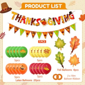 Conjunto completo de festa de Ação de Graças: este kit inclui um banner festivo de abóbora, 20 balões de látex (5 amarelos, 5 verdes, 5 laranjas, 5 vermelhos) e 4 balões de alumínio com desenhos de folhas de perú e ácer. Design com tema de outono: celebre o Dia de Ação de Graças com cores vibrantes e decorações inspiradas no outono, incluindo folhas de outono, abóboras e perus, adicionando um toque alegre à sua festa. Látex e papel de alta qualidade: os balões são feitos de látex durável e o banner de papel de alta qualidade, garantindo decorações duradouras para a celebração do Dia de Ação de Graças. Perfeito para festas de Ação de Graças: ideal para decorar casas, espaços para eventos ou reuniões ao ar livre, este kit trará uma atmosfera festiva e aconchegante a qualquer celebração de outono. Configuração fácil: o conjunto é fácil de inflar e montar, tornando-o perfeito para configurações de decoração rápidas e descomplicadas para seu evento de Ação de Graças.