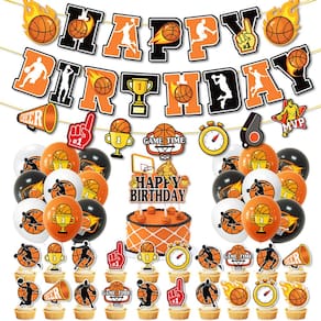 Conjunto completo de festas de basquete: inclui um banner de “Feliz Aniversário”, coberturas de cupcakes com tema de basquete, balões, decorações de troféus e coberturas de bolo, perfeitas para uma festa de aniversário com tema de basquete. Design esportivo vibrante: com bolas de basquete, troféus e gráficos empolgantes relacionados a jogos, este kit adiciona energia e diversão à sua celebração temática de basquete ou esportes. Materiais duráveis e de alta qualidade: feitas de papel resistente e látex, essas decorações são feitas para durar, dando à sua festa uma atmosfera dinâmica e animada. Perfeito para fãs de esportes: ideal para aniversários infantis, eventos de jogos ou qualquer celebração com tema esportivo, dando vida ao espírito do basquete em seu evento. Fácil de configurar: com instruções fáceis de seguir e decorações pré-cortadas, este conjunto é simples de montar e economiza tempo no planejamento de festas, permitindo que você aproveite o evento.