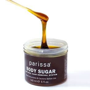 Cera de açúcar facial e corporal Parissa para pele sensível, depilação 100% natural, kit de depilação caseira — 140 ml de cera de açúcar de camomila, 20 tiras de depilação, 3 espátulas de madeira, 5 oz (pacote com 1)