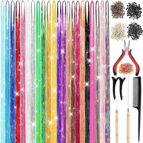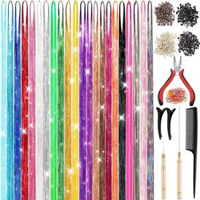 - Fácil de usar: as extensões de cabelo de ouropel de 48 polegadas são longas o suficiente para serem cortadas no comprimento desejado. O kit inclui todas as ferramentas necessárias para facilitar a aplicação. Com 22 cores para escolher, você pode criar uma variedade de estilos para combinar com sua aparência única e liberar seu charme interior.