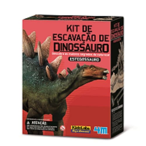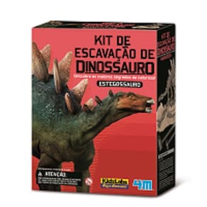 Rinque de ser um paleontólogo escavando os ossos de um dinossauro que percorria a Terra há milhões de anos atrás. Em seguida, coloque os pedaços juntos para montar o impressionante esqueleto de um estegossauro com sua impressionante armadura de placas pontudas. Os brinquedos educativos da 4M auxiliam a criança a exercer de forma plena suas habilidades e talentos com incremento em melhora das mesmas. Cada Kit contém um bloco de gesso com um esqueleto embutido para a criança escavar, com uma ferramenta especial de escavação, escova, instruções detalhadas das maneiras de brincar, divertidas curiosidades relacionadas ao dinossauro em questão, e um Kids Quiz.