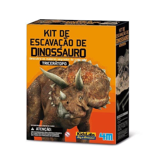 Este Kit de Escavação Tricerátopo 4M inclui um bloco de gesso e ferramentas de escavação, especialmente projetadas para ajudarem a escavar o esqueleto. O Kit de Escavação Tricerátopo 4M fornece horas de diversão para você como um paleontólogo!