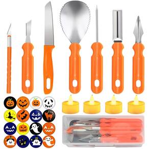 Mostre suas habilidades com este divertido kit de decoração de abóboras, seja você um profissional experiente ou novo na escultura de abóboras, essas ferramentas de escultura facilitam a criação de luzes deslumbrantes de Halloween.