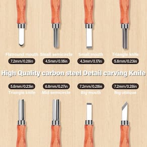 Kit de ferramentas de entalhe em madeira - ?Colocação razoável do terno?Nosso kit inclui 4 facas grandes para talhar, 8 facas pequenas de detalhes, 8 blocos de tílio, composto de polimento, tiras de couro, luvas e um manual de instruções (sem garantia de versão em português). Cada faca tem uma tampa de lâmina e todas as ferramentas são embaladas em uma capa de couro premium para facilitar a portabilidade. - ?Faca de entalhe em madeira de qualidade?Feita com aço afiado de alto carbono, esta lâmina oferece excelente resistência, retenção de borda e resistência à corrosão. Permanece afiado e resiste a ondulações mesmo após uso prolongado. O cabo de madeira de nogueira é ergonomicamente projetado para uma experiência de entalhe confortável e eficiente. - ?Organizador de couro com ferramentas de escultura em madeira?Todas as suas ferramentas de escultura vêm bem embaladas em uma bolsa de couro elegante, tornando fácil e agradável carregá-las aonde quer que você vá, para que você possa desfrutar do seu artesanato a qualquer hora, em qualquer lugar. - ?Liberte sua criatividade?Nosso kit de corte de madeira é projetado para atender a todas as suas necessidades de escultura. Esculpe pessoalmente uma criação de madeira para sua família ou amigos e aproveite o prazer da escultura em madeira. - ?Melhor escolha para presentes de férias?Este conjunto de escultura em madeira não é apenas adequado para crianças e iniciantes, mas também para profissionais. É um ótimo presente para mães, pais, entes queridos e amigos, permitindo que eles experimentem a alegria da escultura em madeira! Se você tiver alguma dúvida, oferecemos um reembolso incondicional ou serviço de substituição.